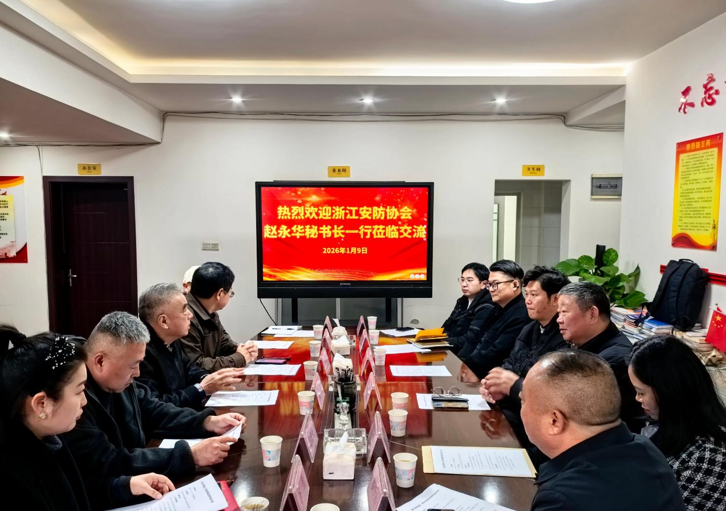 2026-01-12 15:14:45 来源: 作者:秘书处 点击量:731月9日下午,浙江省安全技术防范行业协会秘书长赵永华等一行莅临我会。敬涌理事长、陈海军、秦豫充副理事长,何宇秘书长及监事祖小林、李勤等参加座谈交流。